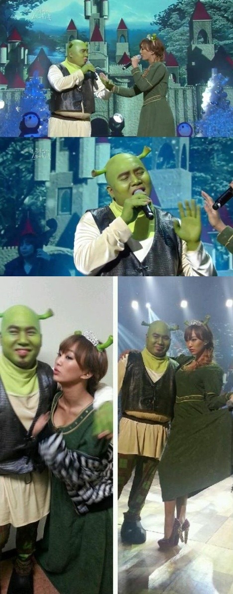 가수 김조한과 씨스타 효린이 슈렉과 피오나 공주로 파격 분장을 감행했다.