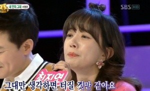 23일 방송된 SBS '도전 1000곡-제43대 왕중왕전'에 출연한 최지연은 서영은의 '내 안의 그대'를 선곡해 노래를 부르던 중 갑자기 닭똥같은 눈물을 뚝뚝 흘렸다.