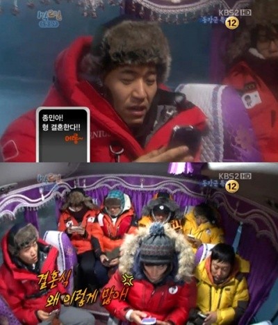 이어 "결혼식이 왜 이렇게 많아!"라고 투덜댔고, 이에 결혼을 앞둔 엄태웅은 짜증내는 김종민을 흘깃 바라봐 시선을 끌었다. 제작진 또한 '나 들으라는 소리니?'라는 자막을 내보내 웃음을 자아냈다.