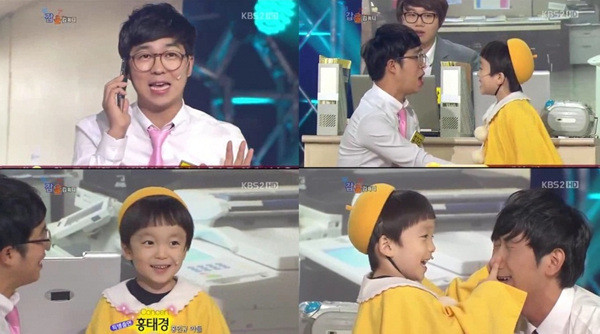 특히 태경군은 누가 봐도 홍인규의 아들이라고 생각될 정도로 닮은 귀여운 외모에 병아리를 연상케하는 노랑색 모자와 옷을 맞춰 입고 나와 귀여운 매력을 뽐냈다. 또 태경군은 6살 나이에 믿기지 않게 또박 또박 대사 처리를 하며 아빠와 개그호흡을 펼치는 등의 모습을 보여 눈길을 끌었다.