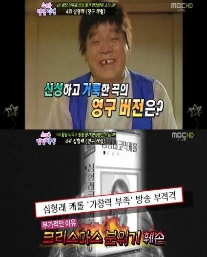 심형래의 영구 캐롤이 방송불가판정을 받은 이유가 공개됐다.12월 25일 방송된 KBS 2TV ‘생생정보통’은 크리스마스를 맞아 코믹캐롤을 소개하며 심형래의 영구 버전 캐롤에 대한 비하인스 스토리를 전해 이목을 끌었다.