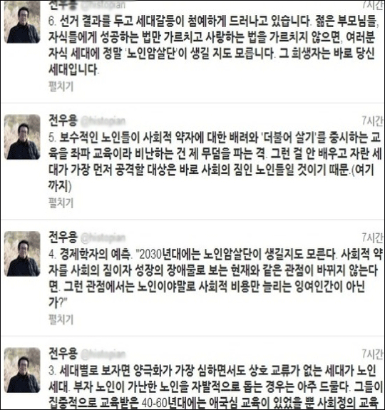 문제는 세대 간 갈등처럼 보이면서도 본질적으로는 이념 세력 간의 갈등이란 측면을 안고 있다는 이야기다.