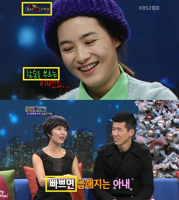 지난25일 방송된 KBS 2TV '김승우의 승승장구'에는 연예계 대표 잉꼬부부 션-정혜영 부부가 출연했다.