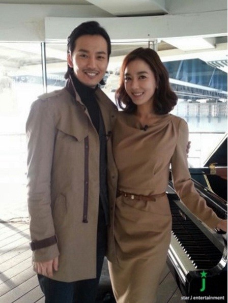 사진 속에서 김남길과 이소연은 피아노 앞에서 다정히 어깨 동무를 하고 카메라를 응시하고 있다.