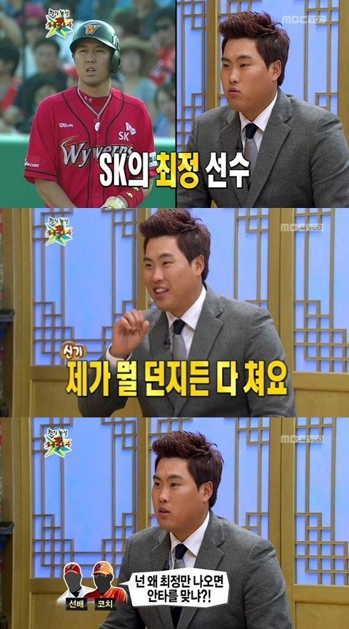 그는 "최정은 빠르게 던지던, 느리게 던지던 어떻게든 내공을 치더라"며 "최정이 너무 잘쳐서 '어떻게 그렇게 잘 치냐'고 직접 비법을 물어봤다"고 밝혔다. 이어 "최정 선수가 '네 표정만 보면 뭘 던질지 보인다'고 말했다. 팀 선배나 코치도 '왜 최정만 나오면 맞냐고 말할 정도'다"라고 덧붙였ㄷ.