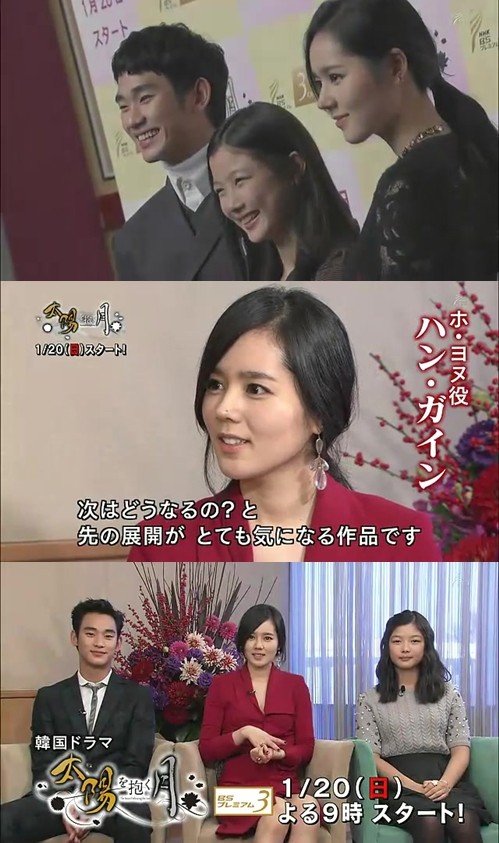 공개된 사진은 최근 일본 NHK 위성채널에서 방영이 결정된 드라마 '해를 품은 달' 홍보를 위해 일본을 찾은 김수현, 한가인, 김유정의 인터뷰 모습이 담겨 있다. 특히, 사진 속 한가인은 커다란 눈망울, 오똑한 콧날 등 또렷한 이목구비와 청초한 매력으로 눈길을 사로잡았다.