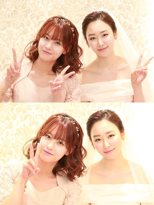 사진 속에서 서현진과 오연서는 수줍은 미소를 지으며 카메라를 향해 손가락으로 브이자를 그리고 있다. 특히, 웨딩드레스를 입은 서현진은 단아하고 청초한 분위기를 뽐내고 있으며, 오연서는 특유의 발랄한 매력을 드러냈다.