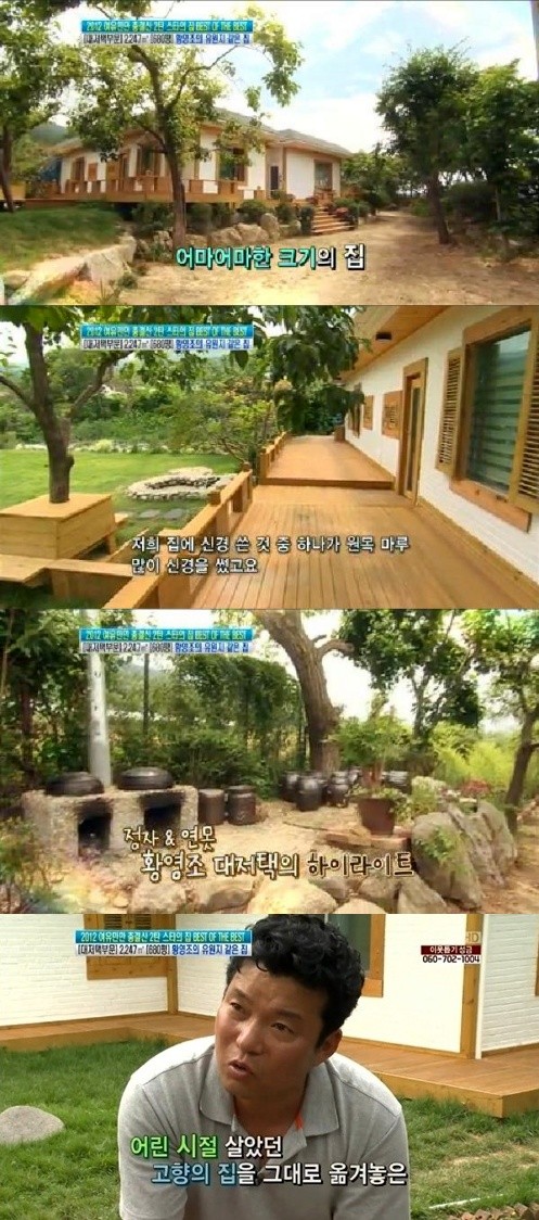 경기도 안성에 위치한 황영조의 유원지 같은 집은 680평에 달하는 어마어마한 크기를 자랑했다. 집 문을 열고 들어가면 넓은 잔디밭에 제주도 현무암으로 돌이 깔려 있고, 탁 트인 잔디밭 중앙에 주택이 자리 잡았다.