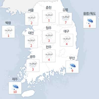 전라도 지역에는 최고 10cm, 중부 지방과 경북 북쪽도 2~7cm 가량 내릴 것으로 보인다. 28일 폭설로 혼란을 겪은 영남지방도 1~3cm 더 내린다.