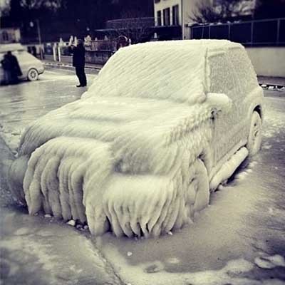 사진 속 자동차는 라디에이터와 보닛은 물론 지붕 등 전체가 두꺼운 얼음으로 덮여 있다. 특히 보닛에서 흘러내려 라디에이터까지 얼음으로 막힌 앞모습은 수염 난 얼음 괴물을 연상케 한다.