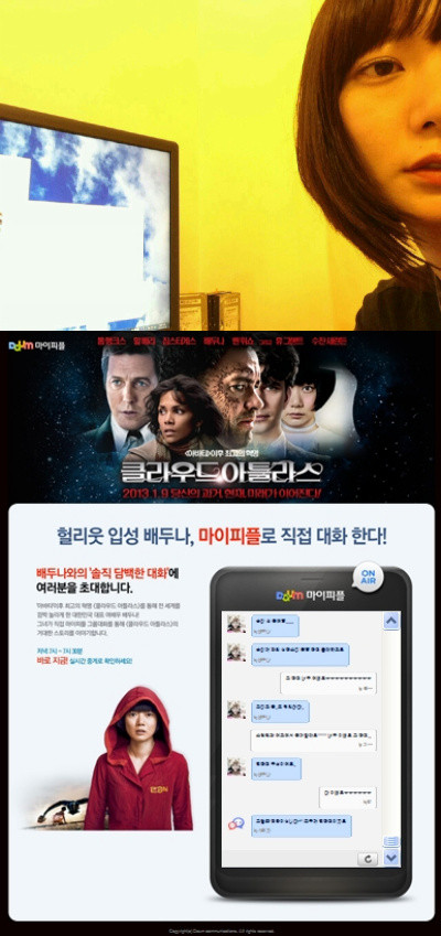 영화 ‘클라우드 아틀라스’가 국내 배우 배두나의 할리우드 진출작으로 기대를 모으고 있는 가운데, 배두나와 팬들이 ‘마이피플’을 통해 진솔한 대화를 나눠 화제다.지난 28일(금) 오후 7시부터 시작된 이번 이벤트에서 배두나가 사전 응모를 통해 당첨된 5명의 팬들과 직접 대화를 나누며 영화에 대해 이야기 하는 뜻 깊은 시간을 가졌다.