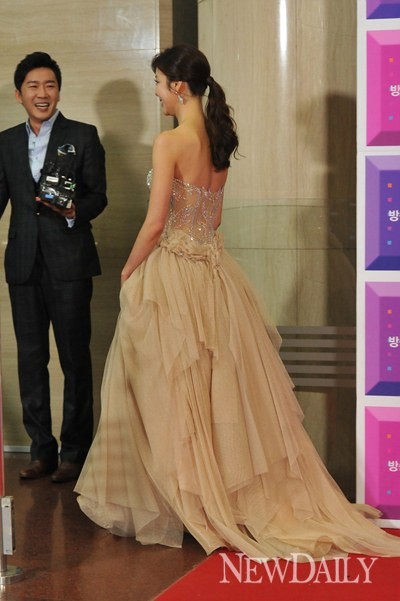김규리가 29일 오후 여의도 MBC에서 열린 '2012 MBC 방송연예대상' 포토월에서 퇴장하고 있다.