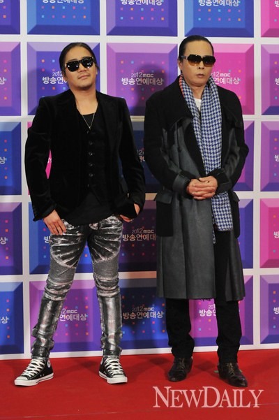 박완규, 김태원이 29일 오후 여의도 MBC에서 열린 '2012 MBC 방송연예대상' 포토월에서 포즈를 취하고 있다.