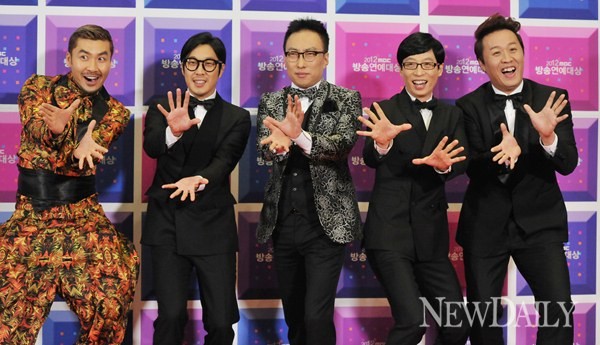 무한도전팀이 29일 오후 여의도 MBC에서 열린 '2012 MBC 방송연예대상' 포토월에서 포즈를 취하고 있다.