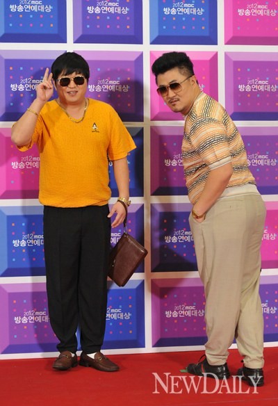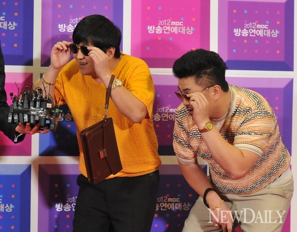 형돈이와 대준이가 29일 오후 여의도 MBC에서 열린 '2012 MBC 방송연예대상' 포토월에서 포즈를 취하고 있다.