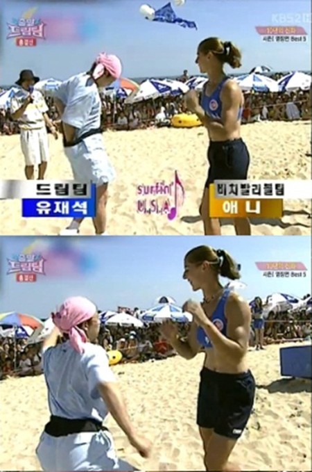 유재석은 전매특허 메뚜기 댄스로 미녀 발리볼 선수들의 관심을 한 몸에 받았지만 굴욕적인 0표를 얻어 머드풀에 빠지게 돼 웃음을 자아냈다.