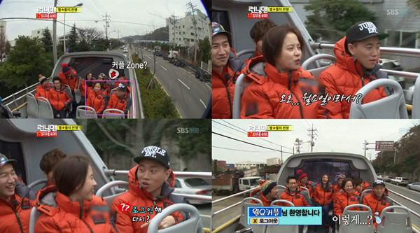 이날 개리와 송지효는 런닝맨 멤버들과 오픈된 열차를 타고 이동 중 자연스럽게 2인석에 나란히 앉았다.