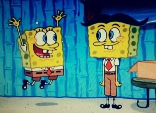 해당 게시물에는 인기 애니메이션 '스펀지밥'의 한 장면이 담겨 있다. 스펀지밥 사촌은 몸통 전체가 사각형인 스펀지밥과 달리 작은 얼굴에 긴 팔다리, 까만 머리숱과 5대 5 가르마, 깔끔한 옷차림을 하고 있다.