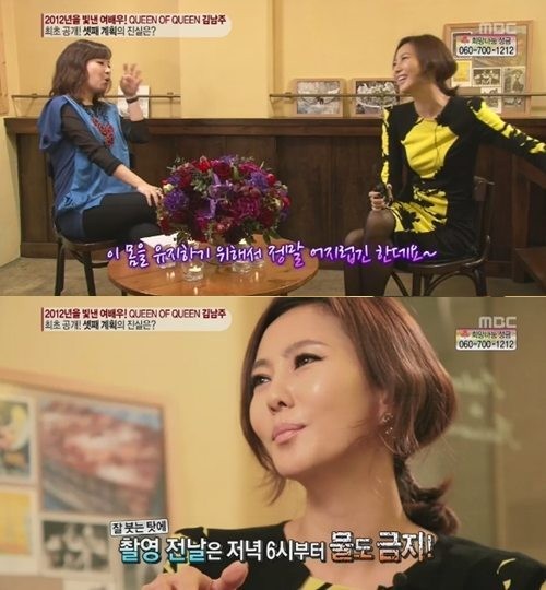김남주는 "먹고 싶은 것을 참아내는 건 남들보다 잘하는 것 같다"며 "어릴 때 부터 마른체형이었다. 근데 나이가 들 수록 군살이 찌긴 찐다. 얼굴도 잘 붓는다"며 말을 이어나갔다.