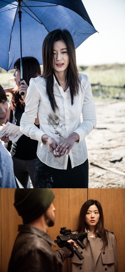 영화 관계자는 "탄피가 사방에서 쏟아지는 대규모 총격 신에서 전지현은 탄피가 얼굴에 박히는 부상을 당했음에도 전혀 불편한 기색 없이 탄피를 빼낸 뒤 촬영을 진행, 프로다운 모습을 보여줬다"고 전했다.