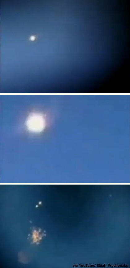 영상을 자세히 살펴보면 폭발하는 불빛 가까이에 있는 작은 불빛을 확인할 수 있다. 작은 불빛이 미확인 비행물체를 타격한 ‘비밀무기’라는 것이 네티즌들의 주장이다.