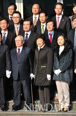 박근혜 대통령 당선인이 6일 서울 삼청동 금융연수원 별관(인수위사무실)에서 열린 현판식 행사에 참석했다.