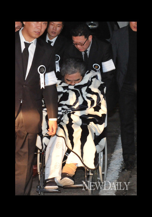 허리 디스크로 고려대병원 구로병원에 입원 중이던 부친은 아들의 사망 소식을 듣고 휠체어에 의지한 채 빈소에 도착해 눈길을 끌었다.