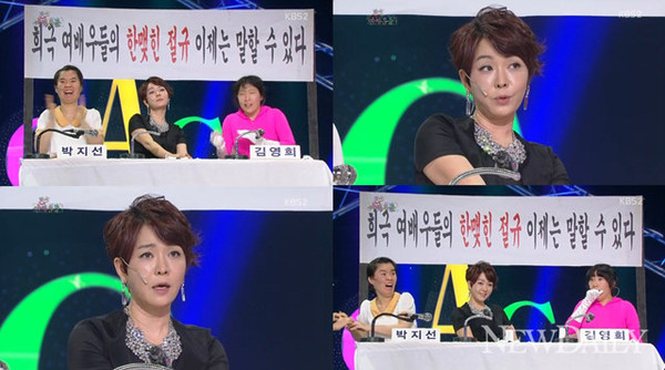 한편, 이날 김정난은 방송에서 온유앓이 외에도 SBS 드라마 '신사의 품격'에서 장동건도 아닌 이종혁 상대역 44세 박민숙 역할로 캐스팅된 데에 불만을 드러내 주변을 웃음바다로 만들었다.