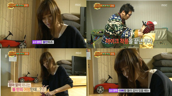 이 때 이 둘을 깨우고, 이들의 짐을 마지막까지 체크하고 있는 윤민수의 아내 김민지 씨의 모습이 포착됐다.