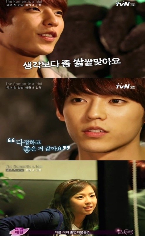 예원과 첫 만남 후 민혁은 "예원 누나가 방송국에서 인사하면 생각보다 쌀쌀맞다. 하지만 실제로 보니 다정하고 좋은 것 같다"고 털어놨다.