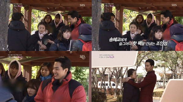 조인성의 배려는 여기서 그치지 않았다. 자신의 키 때문에 송혜교가 화면에 잡히지 않을 것을 우려해 "제 어깨를 좀 내릴까요?"라며 촬영내내 상대배우를 배려하는 신사다운 모습을 보였다.