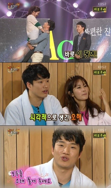 개그맨 김기리가 다소 민망했던 '19금 바지'에 대해 적극 해명하고 나섰다.김기리는 지난 10일 방송된 KBS 2TV '해피투게더3'에 출연해 최근 KBS '개그콘서트-불편한 진실'에서 김지민을 안아 화제가 된 몸반응 사건에 대해 억울함을 호소했다.