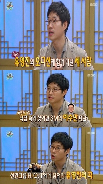 이어 "그러다가 마지막으로 오디션을 본 곳이 SM 이수만 사장님이었다. 그때 SM엔터테인먼트가 잘 나가다가 흐름이 꺾인 곳이었다"며 "유영진이 골방에서 혼자 지내며 곡을 썼다. 유영진이 만든 곡을 들려줬는데 '이 곡은 새로운 친구들한테 준대. HOT'라고 하더라. 그래서 '네가 HOT 하라'고 했다. 그세 바로 HOT의 '전사의 후예'였다"고 덧붙였다.