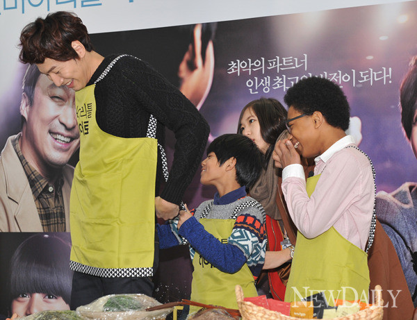 11일 오전 서울 구로구 가리봉동 한국외국인력지원센터에서 배우 이광수, 지대한, 황용현이 다문화가정 아이들과 비빔밥을 만들어 나눠 먹는 나눔 캠페인을 진행했다.