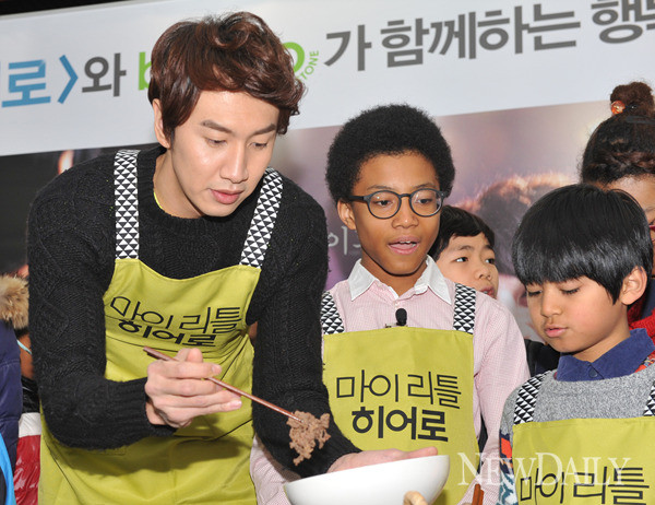 • 11일 오전 서울 구로구 가리봉동 한국외국인력지원센터에서 배우 이광수, 지대한, 황용현이 다문화가정 아이들과 비빔밥을 만들어 나눠 먹는 나눔 캠페인을 진행했다.
