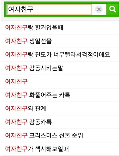 ‘솔로들은 모르는 고민’이라 불리는 게시물이 등장해 관심을 받고 있다.최근 각종 온라인 커뮤니티 게시판에는 ‘솔로들은 모르는 고민’이란 제목으로 포털사이트 검색창을 캡처한 사진 속에는 여자친구의 연관 검색어가 보여진다.‘여자친구랑 할 거 없을 때’ ‘여자친구 생일선물’ ‘여자친구랑 진도가 너무 빨라서 걱정이에요’ ‘여자친구 감동시키는 말’ 등 솔로들은 모르는 커플들만의 고민들이 담겨있다."왜 눈물이 나는지 모르겠다""왠지 고민 공감간다""고민 알고싶지 않다""솔로들은 모르는 고민이라니.. 씁쓸하네"- 게시물을 접한 네티즌들