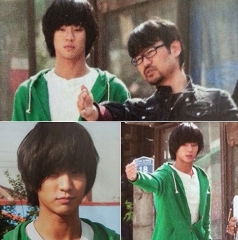 사진 속 김수현은 초록색 트레이닝복 차림에 바가지 머리를 한 '바보'로 완벽히 분해있다.특히 김수현은 촌스러운 초록색 트레이닝복과 바가지 머리에도 불구하고 훈훈한 외모로 여성 팬들의 시선을 사로잡고 있다.