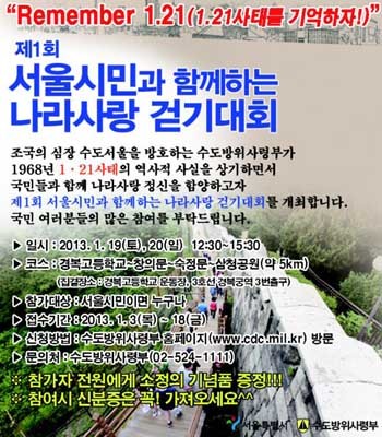 1월 19일과 20일 열리는 나라사랑 걷기대회는 경복고등학교를 출발해 창의문, 숙정문, 삼청공원에 이르는 약 5km 코스다.