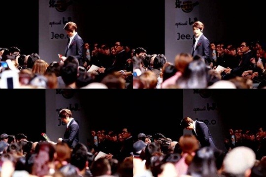 곧 이어 런웨이 워킹을 마친 김우빈은 무대 뒤로 들어가기 직전 객석의 왼편의 한 여성 앞에서 걸음을 멈추고 환한 미소를 선보이며 손에 들고있던 장미꽃을 전달, 한 편의 영화같은 깜짝 프러포즈를 선보였다.