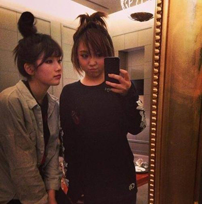지난 13일 수지는 자신의 트위터에 "똥머리 시스터즈"라는 짧은 글과 함께 한 장의 사진을 게재했다.
