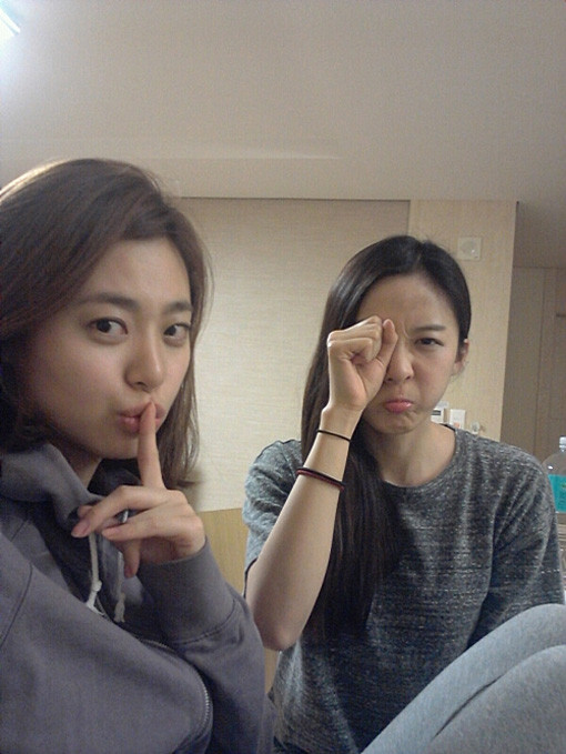 사진 속 이영은과 이청아는 카메라를 향해 각자 깜찍한 포즈를 취하고 있다. 이영은은 입술에 손을 댄 채 조용히 하라는 듯한 포즈를, 이청아는 주먹으로 눈에 든 멍을 가리고 입술을 내밀어 뾰로통한 표정을 지었다. 특히, 두 사람은 수수한 옷차림의 화장기 없는 민낯임에도 굴욕 없이 빛나는 미모를 자랑해 시선을 사로잡았다.
