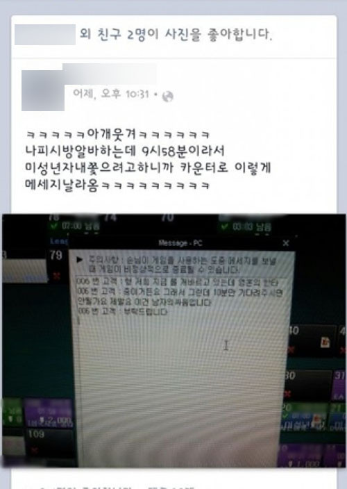 어느 미성년자의 부탁이라는 게시물이 화제다.최근 한 온라인 커뮤니티 게시판에 '어느 미성년자의 부탁'이라는 제목에는 PC방 아르바이트생이 올린 게시물이 올라왔다.‘어느 미성년자의 부탁’게시물에는 10시이후 PC방에서 쫓겨날 위기에 처한 어느 청소년의 부탁이 담겨 있다."형, 10분만 기다려 주세요. 제발요""이건 남자의 싸움입니다. 부탁드립니다"-PC방에서 퇴장해야 하는 미성년자 고객이 알바에게 보낸 쪽지"아 웃겨, 나 PC방 알바 하는데 9시 58분이라서 미성년자 내쫓으려고 하니까 카운터로 이렇게 메시지 날아옴"-‘어느 미성년자의 부탁’의 게시자