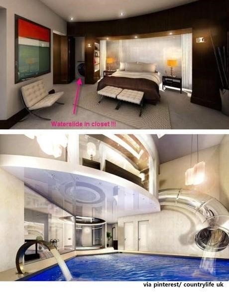사진 속 침실은 언뜻 보면 평범한 것처럼 보이지만 침실의 옷장에 워터슬라이드를 연결해 아래층 수영장으로 통하도록 했다. 잠을 자다가 수영을 하고 싶으면 단 3초 만에 입수가 가능하다.