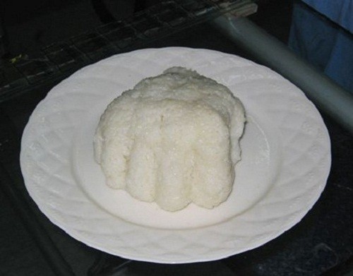 해당 사진에는 접시 위에 특별한 재료 없이 하얀 쌀밥으로 빚은 주먹밥이 담겨 있다. 특히, 말 그대로 주먹 모양으로 만들어 보는 이들의 웃음을 자아낸다.