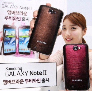 앰버 브라운과 루비 와인은 각각 보석인 호박과 루비의 클래식하고 우아한 색상을 ‘갤럭시노트2’의 전면과 후면은 물론 S펜에도 적용한 것이 특징이다.