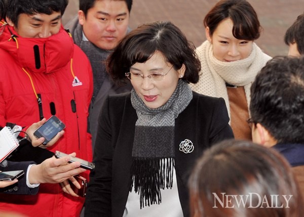 17일 오전 서울 삼청동 인수위원회에서 열린 문화체육관광부 업무보고를 위해 김현숙 여성문화분과 인수위원이 들어오고 있다.