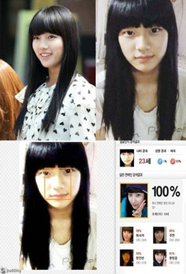 특히 사진을 입력하면 사진 속 모습과 닮은 연예인을 찾아주는 스마트폰 앱에서 확인 했을 때, 여장한 김수현의 사진에서 미쓰에이 수지와 싱크로율이 100%로 나와 더욱 놀라움을 주고있다.