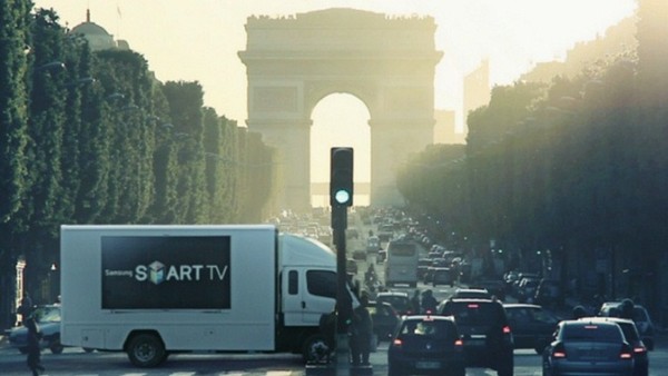 광고는 삼성 스마트TV를 담은 운송차가 현빈의 내레이션에 맞춰 세계 각지를 돌며 각 나라의 특징을 설명하는 영상으로 시작된다.