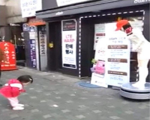 '정말 예의 바른 아기' 영상(http://bit.ly/SnVgm5)은 여자 아기 모습을 촬영한 것으로 아기가 휴대전화 매장 앞에 설치된 자동인사 마네킹을 보며 인사를 맞고 있다. 여자 아기는 마네킹이 90도로 인사할 때 함께 허리를 굽혀 공손하게 배꼽 인사하는 모습이 보는 이들을 흐뭇하게 만든다.