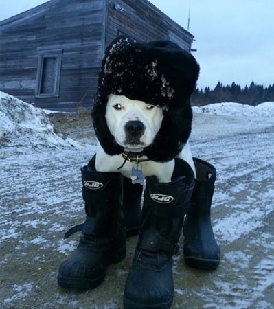 공개된 사진에는 강아지 한 마리가 추위를 막기 위해 완전무장한 채 카메라를 바라보고 있다. 특히, 이 강아지는 사람이 쓰는 털모자와 장화를 신고 서 있어 다소 우스꽝스러운 모습을 연출했다.